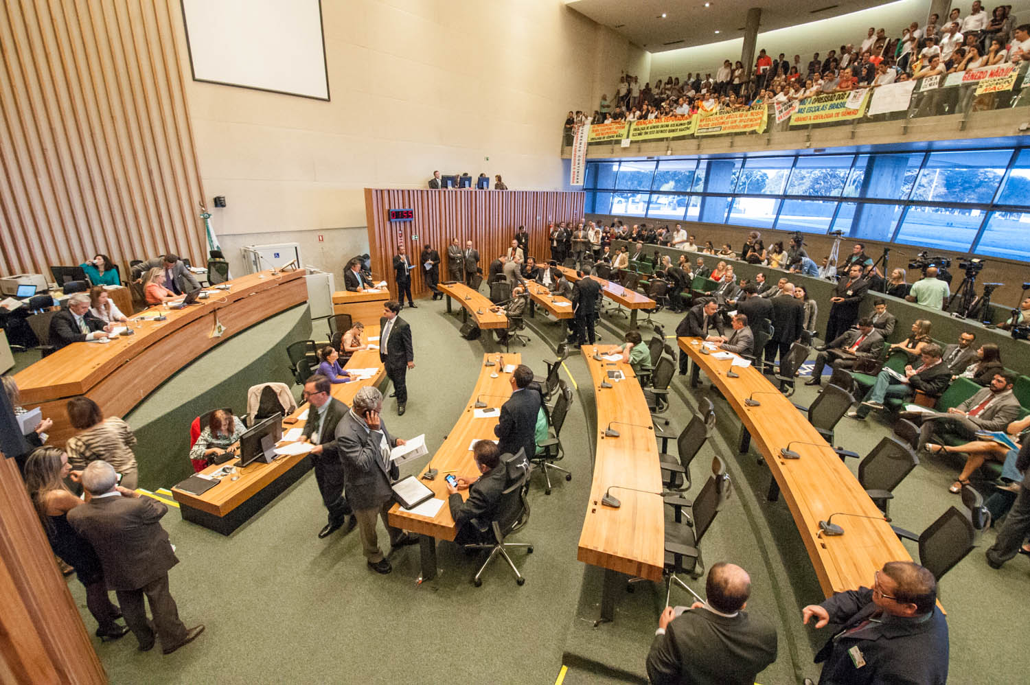 A Câmara Legislativa do Distrito Federal aprovou no começo da noite desta terça-feira (16) o projeto de lei nº 428/2015, que trata do Plano Distrital de Educação (PDE). De autoria do Executivo, a proposta foi aprovada com o voto de 23 deputados, na forma de um substitutivo com diversas emendas e subemendas. Entre as principais alterações feitas ao texto original está a exclusão de referências a questões de gênero e sexualidade – o que gerou amplo debate em plenário.